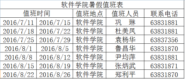 必赢线路检测30032016年暑假值班表
