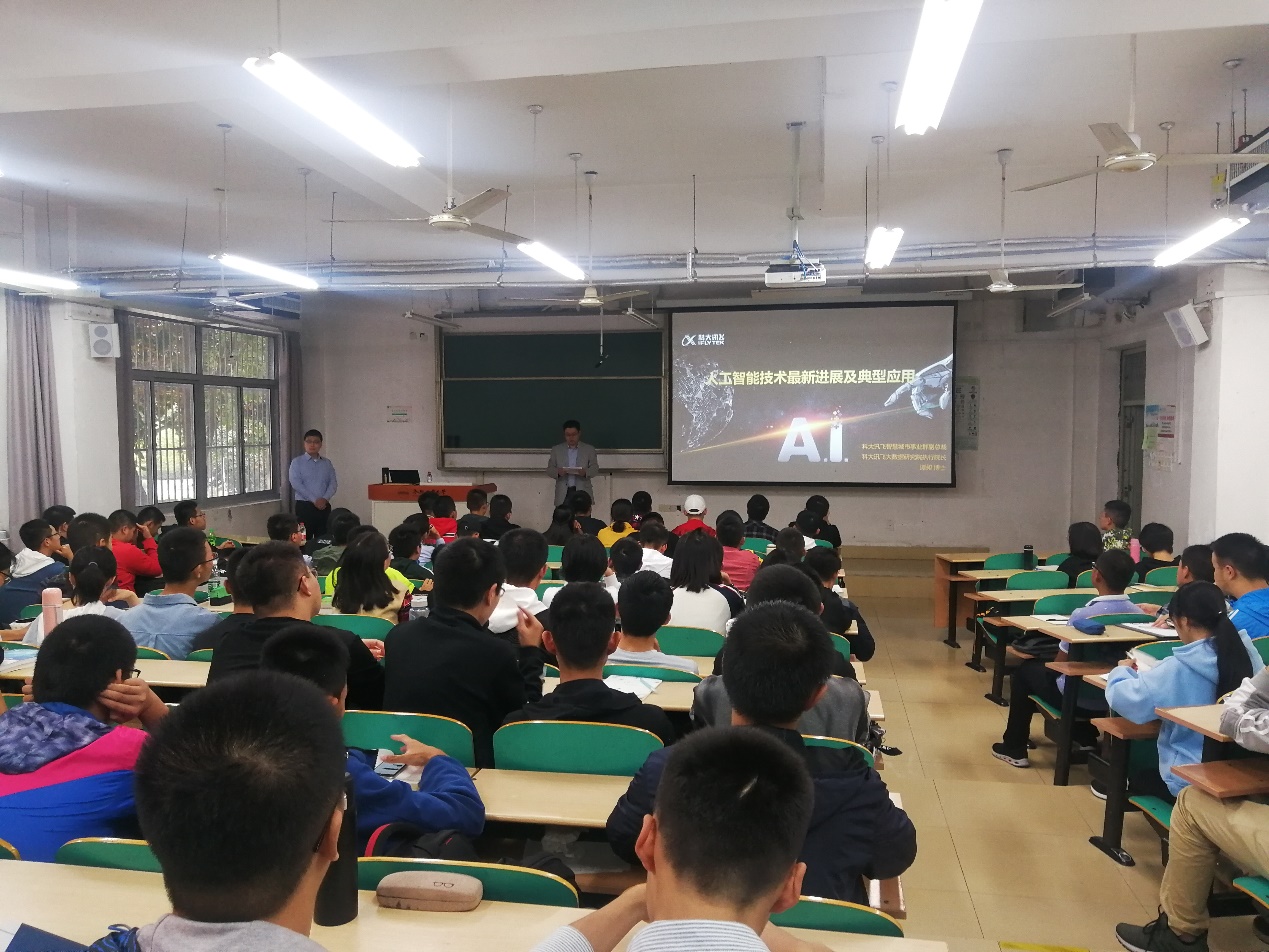 最后,谭老师对科大讯飞公司所取得的成绩及产品做出了分享。科大讯飞公司凭借“用人工智能建设美好世界”为宗旨,开发了翻译器等智能语音产品,并且在多项国际比赛中取得优异的成绩。本次讲座使同学们对人工智能有了更加深入的了解。希望通过本次讲座,同学们能更好地认识到当前时代发展趋势。在往后的学习中,明确目标,向前奋进。