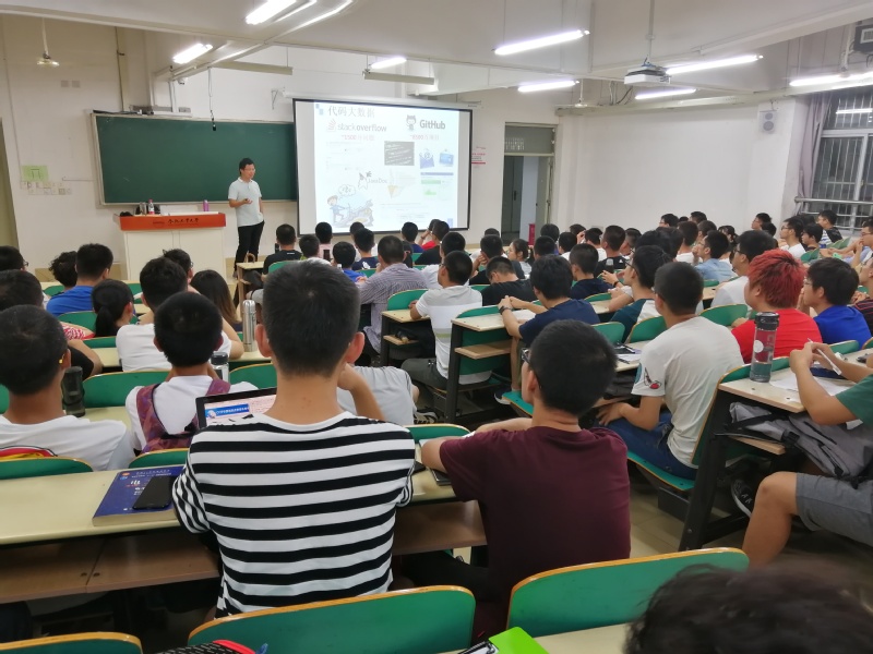 报告中,彭鑫老师围绕数据驱动的智能化软件开发技术这一主题介绍了机器学习、知识图谱、数据挖掘这些基础性的概念,并系统解释了智能化软件开发技术、目前面临的主要问题以及复旦大学研究团队在相关方面的研究成果。随后,听报告的学生就一些代码和规范语料的问题与彭老师现场展开了深入的讨论。