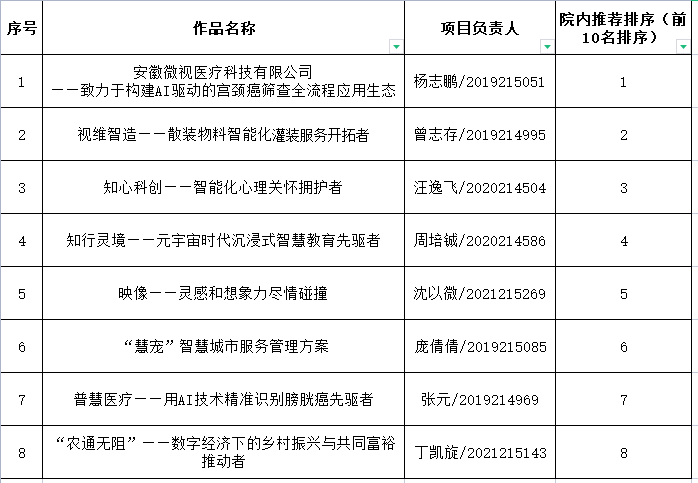 根据《关于举办2022年“挑战杯”中国大学生创业计划竞赛校内选拔赛的预通知》,学院团委分别开展了2022年“挑战杯”中国大学生创业计划竞赛院内选拔赛动员、预报名、作品申报等工作。本着公平、公正、公开的原则,经专家评审后,现将校内选拔赛院内作品遴选最终结果(排名按照评审结果顺序)公示如下: