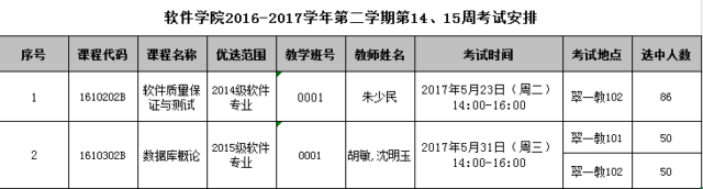 必赢线路检测30032016-2017学年第二学期第14、15周考试安排如下: