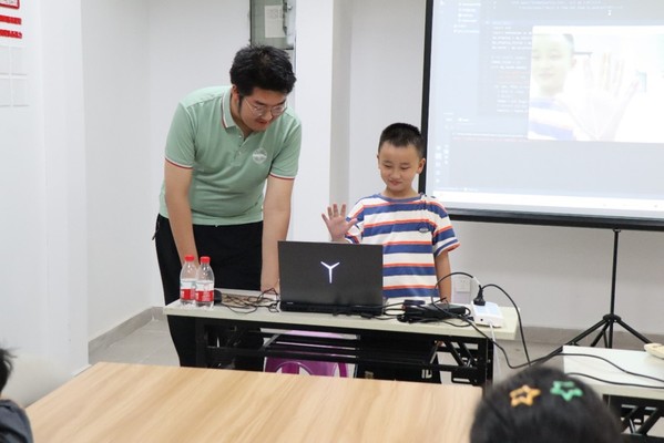 系列化课程中,团队成员通过知识讲授,互动交流、动手操作、课堂体验等多种形式让孩子们参与其中。邀请孩子们体验用编程实现手部动作识别,讲述计算机视觉、深度学习与生活的密切关系;让孩子们与ChatGPT对话,感受人工智能的魅力;开发的益智类小游戏、参与人工智能作图绘图……一堂堂寓教于乐的编程课,充满趣味,在不知不觉中培养了孩子们的创造力和想象力,拓宽了思维边界,也给孩子们心中种下热爱科学的希望种子。