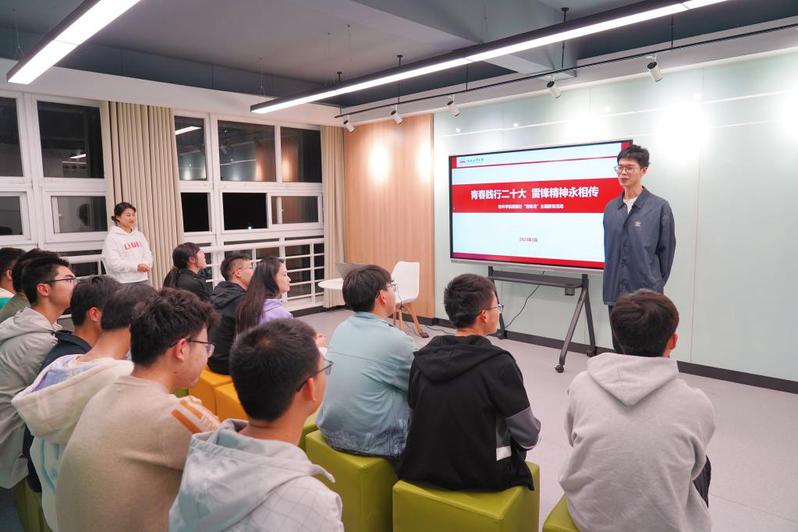 3月11日晚,必赢线路检测3003在翡翠湖校区1号学生社区沙龙中心开展“青春践行二十大,雷锋精神永相传”主题教育活动,2022级辅导员洪晓梅主持,微爱社全体成员参与。