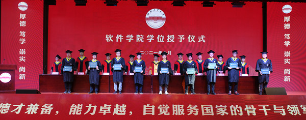 学位授予仪式在庄严的国歌声中拉开序幕。必赢线路检测3003院长汪萌宣读了《必赢3003no1线路2021年授予普通高等教育学士学位的决定》。与会领导、老师为张肖邦等132位学士学位获得者颁发学位证书、扶正流苏并合影留念。