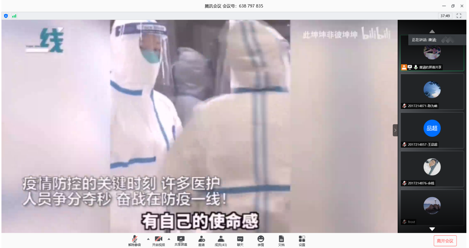 通过本次小班辅导,让大家看到了在疫情防控过程中,医护人员的辛劳和不易,以及国家对于本次疫情防控所做的工作和努力。中国最早发现并指出疫情的严重性,用最短的时间控制住本国疫情的同时,第一时间支援其他国家共同对抗疫情。作为青年学生的我们应该学习并发扬这种无私奉献、迎难而上的民族精神,坚定理想信念,勇于担当作为。