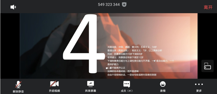 主持人陶震通过对于本次疫情期间所发生的的一些恶性事件引入,引发同学对于法律意识缺失的危害的思考,就此展开讨论,梁臣宏同学在此分享了对于“郑州毒王”的看法。接下来主持人通过当下b站正火的罗翔老师的视频入手,进一步探讨法律存在的意义和必要性,祝新宇同学对此也发表了他的见解。最后在主持人的引导下,大家开始结合实际,对于法治教育展开讨论,吴锦丽和杨棋文两位同学也结合近期所发生的事件进行剖析,再次重申法治教育对于青年人的重要性。