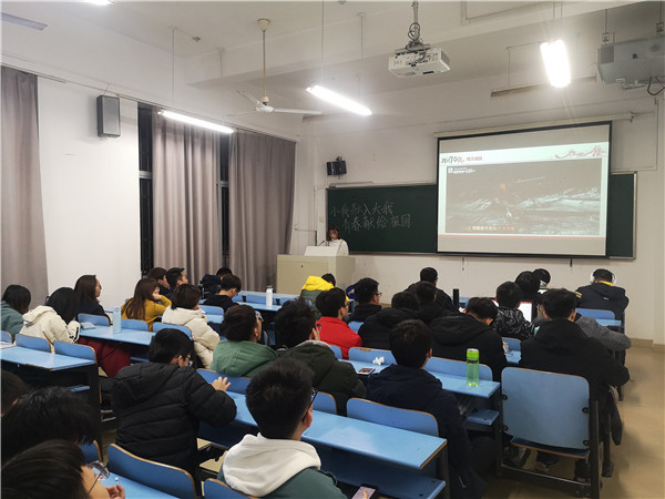 为更好的引领全体学生学习习近平总书记在庆祝中华人民共和国成立70周年大会上的重要讲话,激发和动员全体学生为实现中华民族伟大复兴的中国梦贡献青春、智慧和力量,11月至12月期间,学院2018级各班级先后举行“小我融入大我,青春奉献祖国”小班辅导。