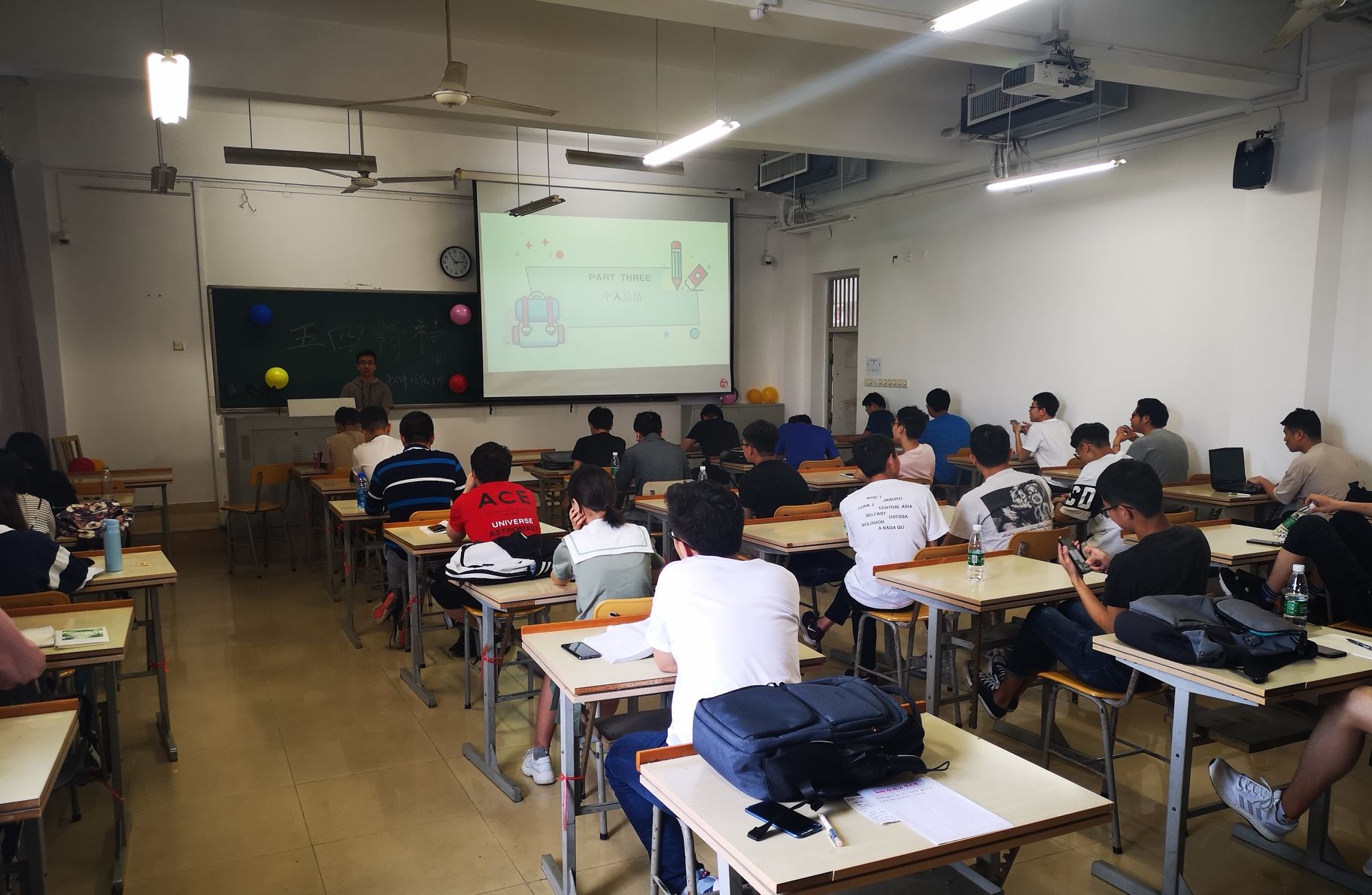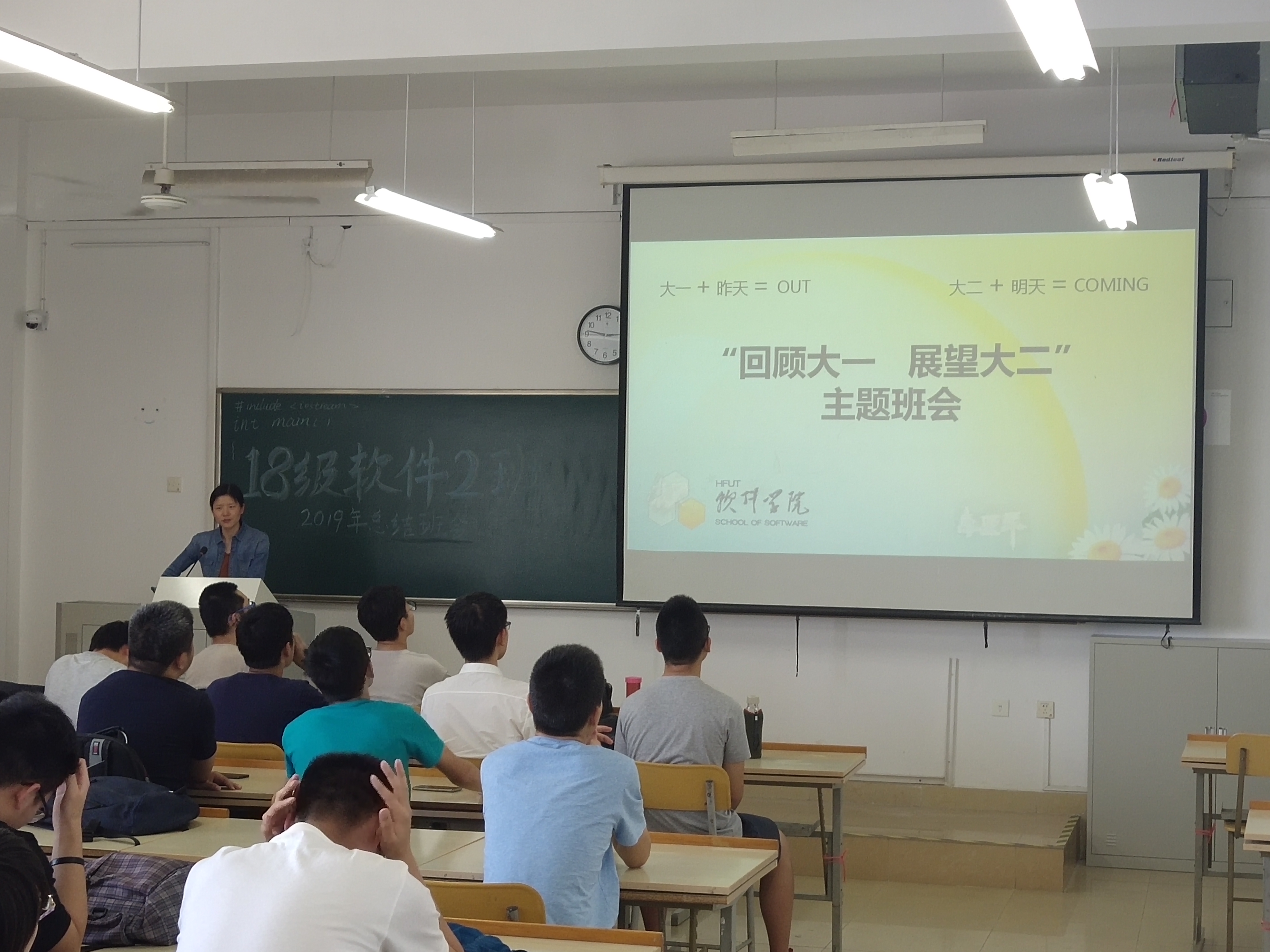 观看成长足迹视频。由班长播放班级的成长足迹视频,在同甘共苦300多天后,我们回首过去,留下的满是喜悦与感慨。大家一起经历了军训、团日活动、运动会、元旦联谊等活动,这些活动让我们收获了友谊,从一开始的互不了解到现在同学们打成一片,主动为班级贡献自己的力量。成长足迹视频帮大家记录了这近一年来共同经历的点点滴滴,同学们在杨老师的细心教导下学习高数,在李老师欢声笑语下品味大物,在偶老师淳淳教诲下初识c++,在张老师的引导下了解数据结构,在汪老师和杨老师指导下训练逻辑思维······一边回忆一边思考着,大家都有着许多感触想跟这个大家庭的每一个人分享,不仅仅只是对自己的过去学习生活的总结,还包括过去一年中许许多多酸甜苦辣的经历,最重要的还是对未来的规划与向往。