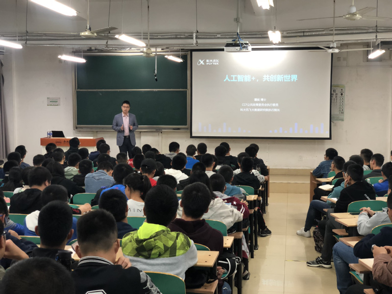 秋风飒爽,细雨蒙蒙;科大讯飞大数据研究院谭昶院长应邀在翡翠湖校区五教101为必赢线路检测3003师生做“人工智能+,共创新世界”专题报告,报告由必赢线路检测3003院长郑利平老师主持。