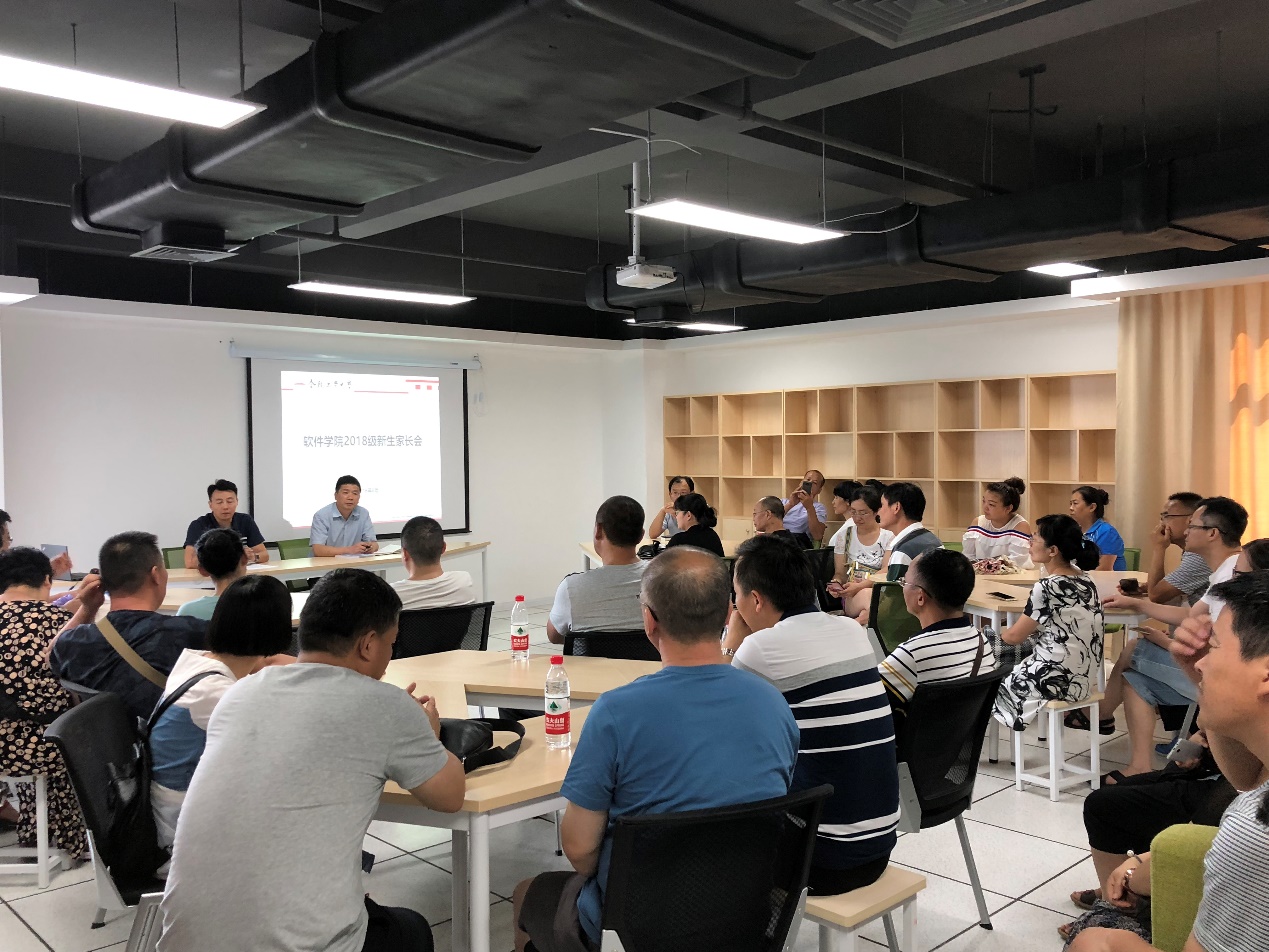 8月24日下午,必赢线路检测3003在科教楼学院创新工作室召开2018级新生家长见面会。必赢线路检测3003院长郑利平、学院党委副书记张炳武、2018级辅导员老师卢茜与新生家长们共同参加此次见面会。