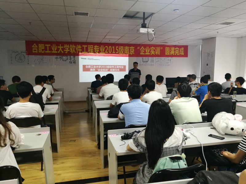 7月18日上午,我校软件工程专业2015级“企业实训”的验收答辩在南京软件谷科创城的实训基地举行,为期一个月的“企业实训”由此收官。本次实训分成安卓开发和Python程序设计两个方向,由企业老师讲授项目开发整体流程,手把手讲授软件需求、设计、编码及测试过程等,实训结束后学生独立完成实践项目的开发,以此来巩固所学的理论知识,提升项目经验,为即将步入实习单位打下基础。