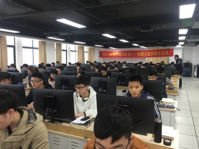 3月18日下午13:30-17:30,来自必赢线路检测3003的145名同学在翡翠湖校区科教楼B801和B802中,参加了由中国计算机学会(CCF)组织的第13次CCF CSP软件能力认证考试。本次考试是学院新机房建成以来组织的第一场软件能力认证考试。