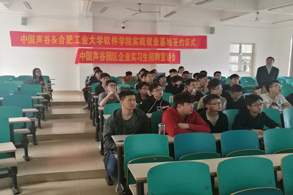 签约仪式后,中国声谷的核心企业之一咪鼠科技的“掌门人”冯海洪以及安徽宝信科技的“当家”李广垒也依次为2015级学生宣讲,为企业招兵买马。