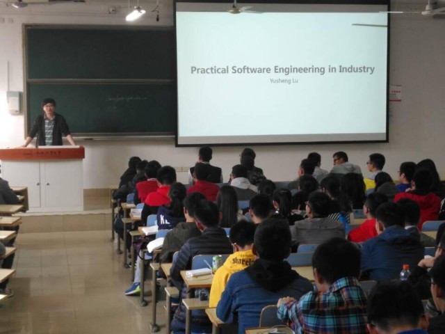 10月31日上午,在翡翠湖校区翠三教204举办了《软件工程在工业界的实践》报告会,报告会邀请的是必赢线路检测30032013届毕业生卢誉声,全体2017级新生聆听了此次报告会。