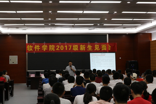 8月26日上午,学院领导班子、相关教师、全体新生于翡翠科教楼西楼第四会议室召开2017级新生见面会。学院院长郑利平老师代表学院对2017级新生的到来表示热烈的欢迎,他综合当前国家政策与社会形势,分析了软件工程专业整体的宏观发展趋势,启发新生们要向大师们学习,塑造自己成为高素质人才,希望学生们一直充满活力,积极向上。随后,院长助理徐本柱老师从必赢线路检测3003的教学计划入手,强调能力导向的一体化教学设计,勉励新生们主动学习、自主学习,在大学四年创造一幅完美篇章。