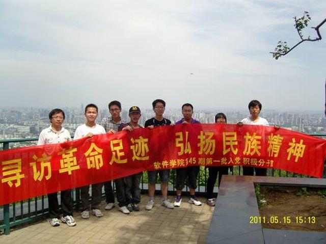 “千淘万漉虽辛苦,吹尽狂沙始到金”, 为了新中国的繁荣富强,中国共产党几十年来历经风风雨雨。在山上我们遇到了一位老党员,她在1958年加入中国共产党。今年七十多岁了,还经常利用空余时间出来登山锻炼,她告诫我们一定要珍惜来之不易的锻炼机会将来在生活中取得不断进步。最后我们在山顶合影留念。