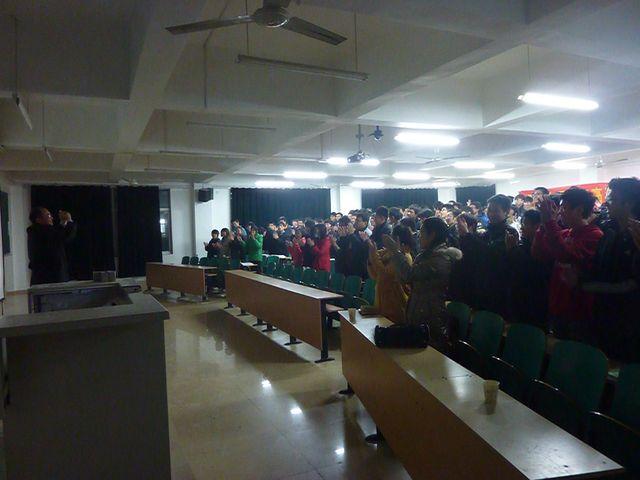 首先,高教授通过一个简单的左手右手游戏将我们带入了一场有关礼仪的饕餮盛宴。高教授用一押韵对称的长诗概括了大学在求学期间的现状,点出大学生的缺点——言行不一,并讲明了礼仪的重要性。