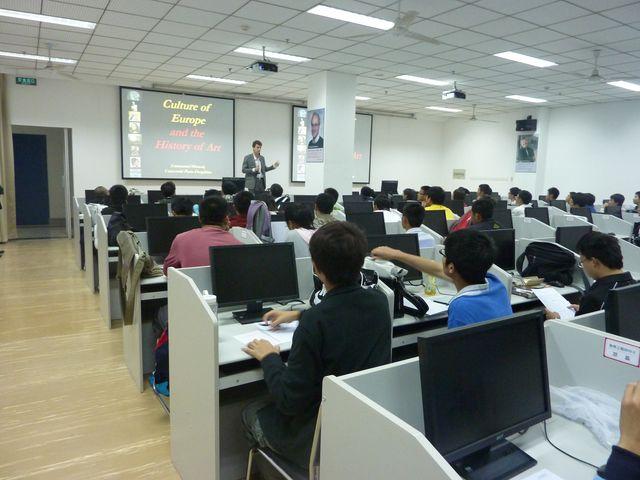 2010年10月15日晚,应必赢线路检测3003邀请巴黎第九大学莫诺教授在必赢线路检测3003第二多媒体教室为必赢线路检测3003学生做“欧洲文化史”巡回讲座。演讲会由必赢线路检测3003党委副书记、副院长张炳武主持。