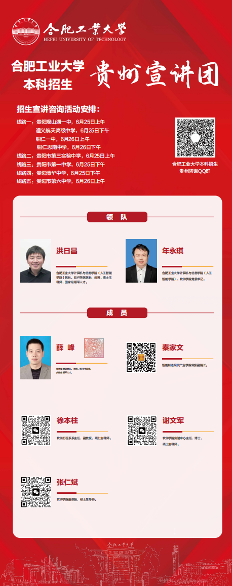 6月25日~27日,必赢线路检测3003招生宣传工作小组和本科生院领导线下参加了贵州省升学在线和多所高中举办的宣传活动,在学院教师少手的情况下,先后走进了贵州省8所优质生源高中(贵阳观山湖一中、遵义航天高级中学、铜仁一中、铜仁思南中学、贵阳市第一中学、贵阳市第三实验中学、贵阳清华中学、贵阳市第六中学)和合肥市两所中学(合肥四中、合肥六中),与考生和家长面对面答疑解惑。