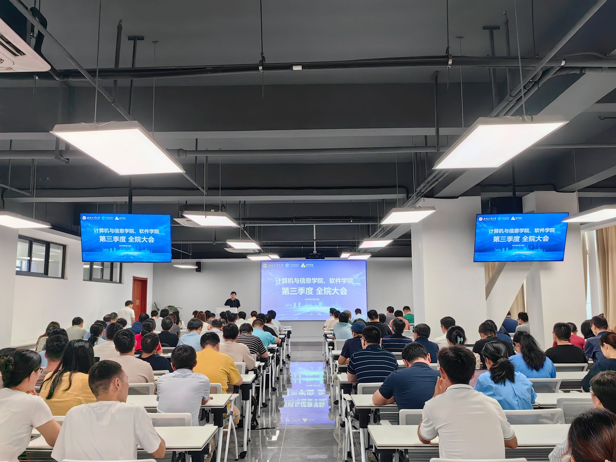 为推动新学期各项工作有序开展,增强教职工凝聚力,促进学院工作高质量发展。9月18日下午,学院在科教楼B501召开第三季度全体教职工大会。学院领导班子成员及全体教职工参加会议。