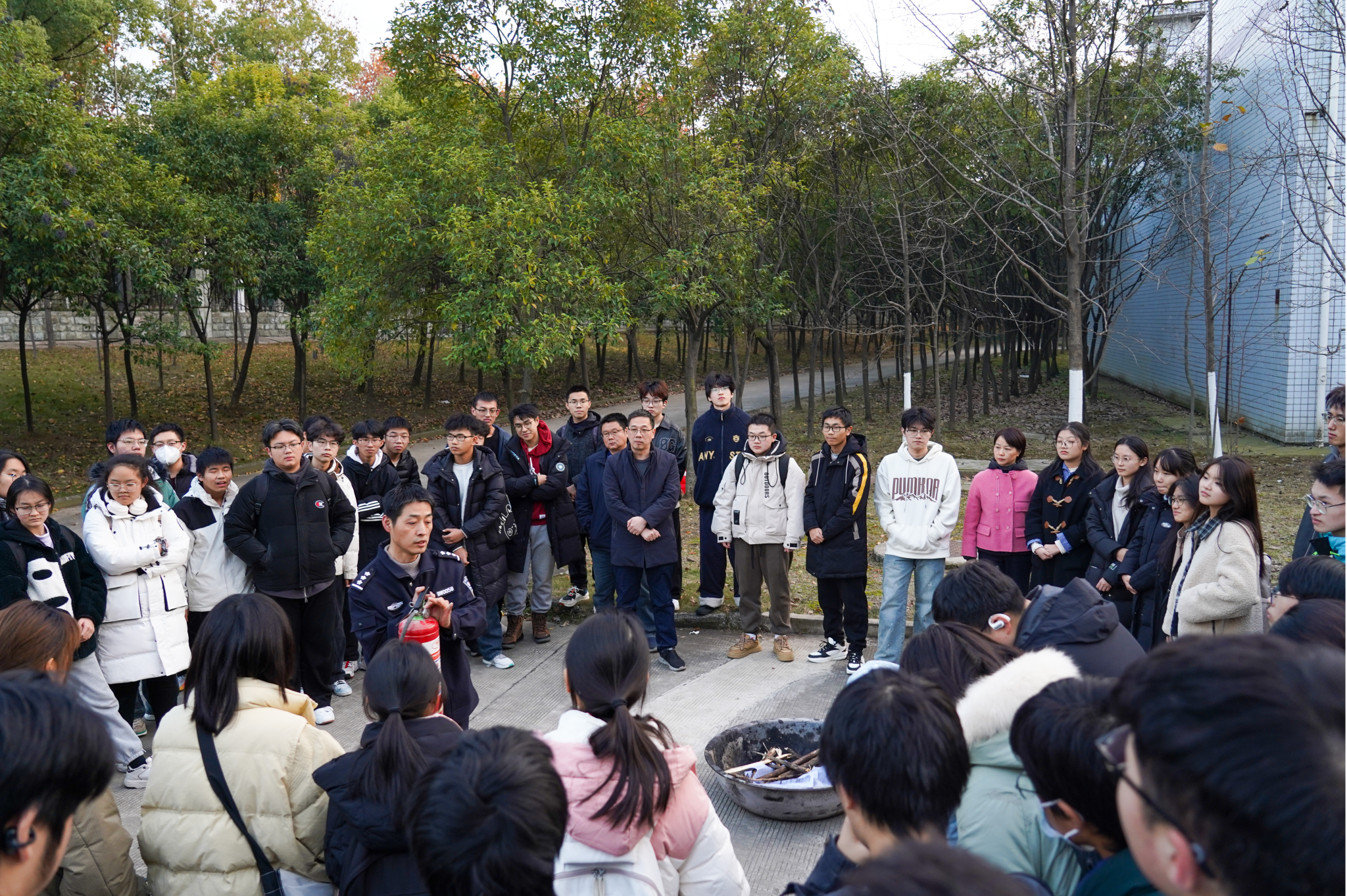 为进一步提升师生安全意识、应对突发事件的能力,12月17日下午,必赢线路检测3003与学校保卫处联合在翡翠湖校区举行实验室安全应急演练活动。学院副院长薛峰、党委副书记储文静、保卫处消防科庞孙、学院教师代表、全体辅导员和2024级本科生共计180余人参与此次活动。