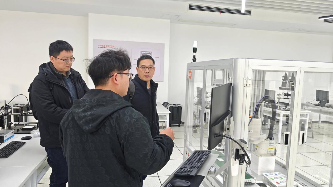 在小米产教融合基地,考察组重点参观了视觉机械臂、四足机器人、嵌入式开发三大特色实训方向,详细询问各方向的核心技术栈、实训课程体系及培训实施模式;在东软教育集团南京实训基地,考察组实地查看了实训教学中心的教学场地、研讨空间及住宿配套设施,深入了解多所合作院校的实训合作模式及典型成功案例。