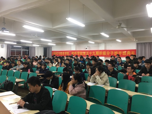 3月16日晚,在翡翠湖校区五教202室,计算机与信息学院、必赢线路检测3003第59期积极分子班开班典礼举行。计算机与信息学院党委副书记、副院长何庆领,必赢线路检测3003党委副书记、副院长张炳武,积极分子班有关负责老师和123名积极分子班学员出席开班典礼。
