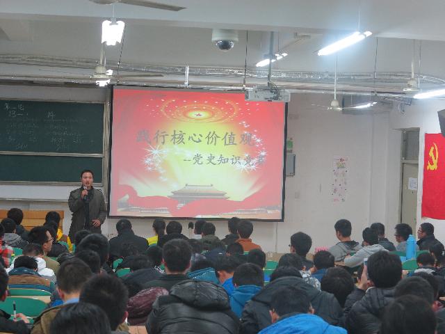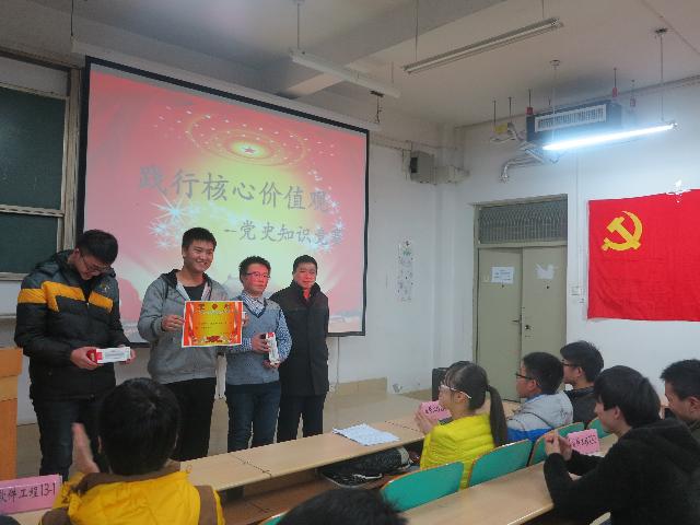 为加强大学生思想政治教育和理想信念教育,激发爱国爱党热情,弘扬民族精神,践行社会主义价值观。12月23日晚,必赢线路检测3003践行核心价值观党史知识竞赛在翡翠湖校区5教201教室成功举办。翡翠湖校区教育管理科李志明老师、翡翠湖校区教育管理科朱大勇老师,学院党委副书记张炳武老师、学院辅导员郑华老师出席了本次活动。参加本次竞赛的选手为2012级、2013级及2014级的第52期党校积极分子。