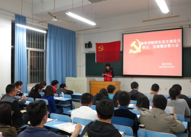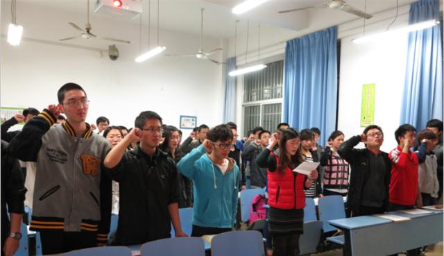 2014年4月24日,必赢线路检测3003学生党支部举行了党员转正、发展及宣誓大会在翡翠湖校区6教110胜利召开。参加本次会议的有:党支部书记郑华老师、以及支部除在校外实习外所有党员。大会主要讨论7名预备党员的转正问题、10位同志的发展问题暨新老党员宣誓仪式。