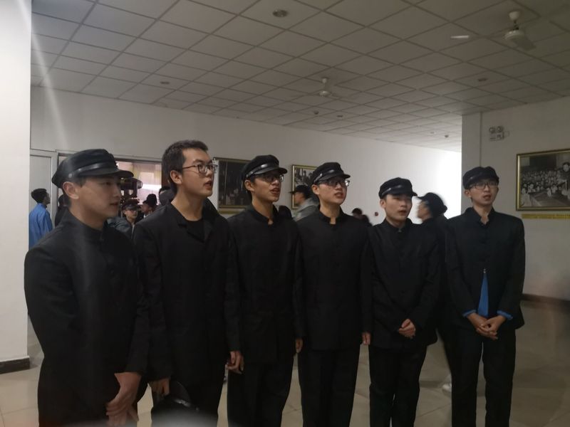 为了准备本次汇演,我们学院的五十多名同学进行了长达一个月的训练与排练,付出了许多汗水与辛劳。直到汇演之前,同学们仍在场外进行着排练。