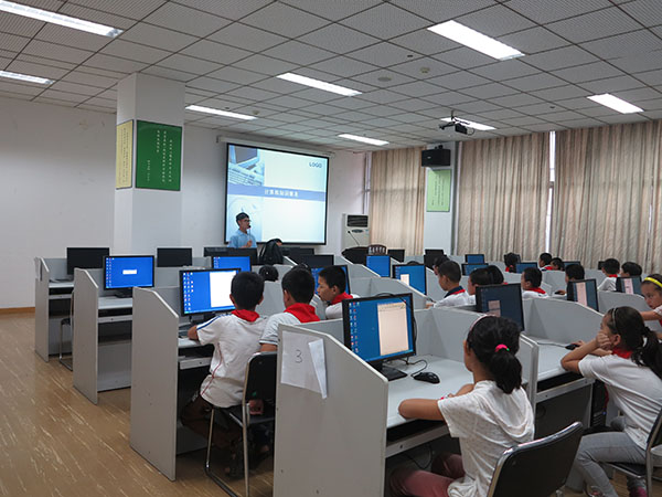 同时,软件学子结合自己的专业特色,在学院的第一机房为小学生做关于计算机基础知识的讲座,让他们进一步地接触计算机,并手把手的教他们如何制作简单的FLASH动画。