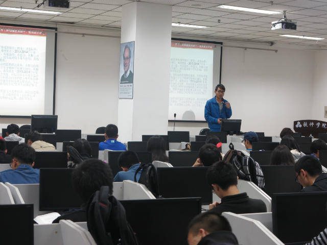 2013级总共有14名同学申请了此次优秀团员和团干,他们分别上台进行了约两分钟的演讲,大家都真诚的阐述了自己对这份荣誉的认识以及对以后学习生活的保证,随后软件工程13-1班和13-2班各自对申请者进行了投票选举。