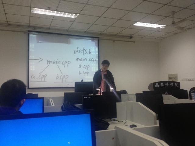 然后是由孙科主席详细讲解make命令的使用,以及Makefile的编辑,为同学们提供了编译大型软件的基础知识,同时还简单讲解了Windows下PATH的意义。之后主席通过问答环节的讲解,加强了同学们对知识的掌握,增强了熟练度。